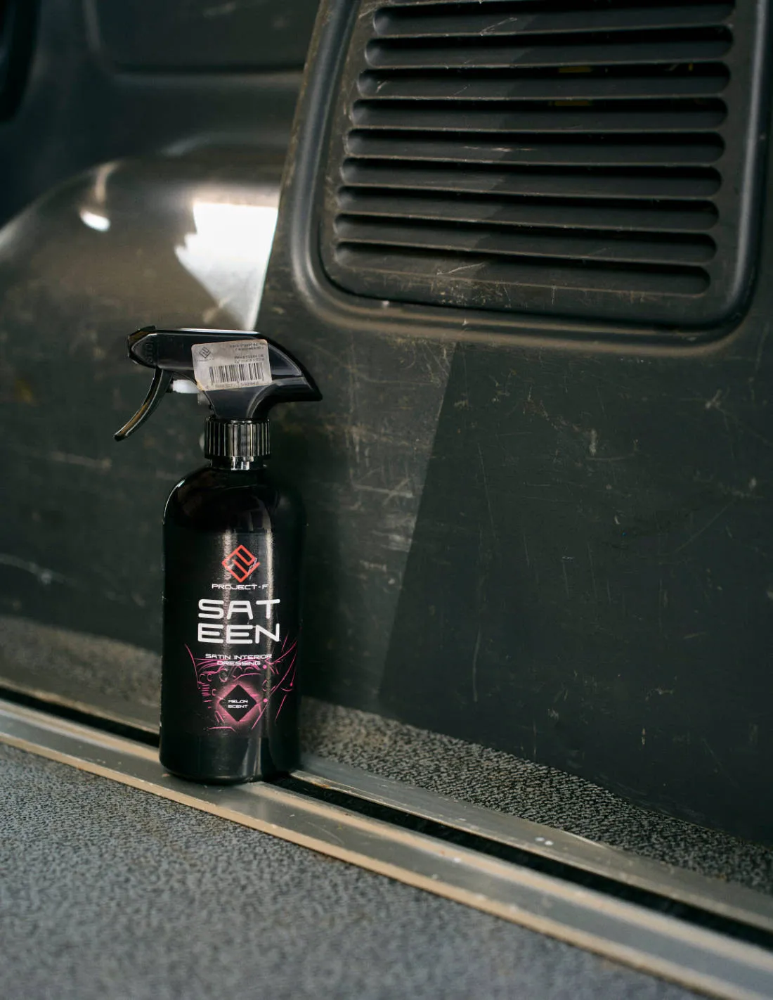 - Pomocí rozprašovače PROJECT-F - Dark Trigger spray (volitelné příslušenství), aplikujete SatEEN na požadovanou oblast plastů, pryžového povrchu.